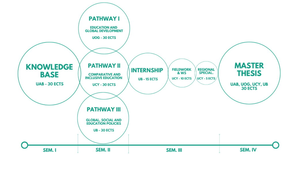 Erasmus Mundus Joint Master in Education Policies for Global Development (GLOBED) မှာတော့ ကျောင်းသား အယောက် ၂၀ အထိ စကောလားရှစ် ရရှိနိုင်မှာ ဖြစ်ပါတယ်။ First Semester ကို ကို ရွေးချယ်တဲ့ Track အလိုက် မတူညီတဲ့ တက္ကသိုလ်တွေမှာ တက်ရောက်ရမှာ ဖြစ်ပါတယ်။ Autonomous University of Barcelona သို့မဟုတ်University of Cyprus, Second Semester ကို University of Glasgow နဲ့ Thငrd Semester ကို University of Bremen တို့မှာ သင်ယူရမှာ ဖြစ်ပါတယ်၊ နောက်ဆုံး Semester ကို Autonomous University of Barcelona မှာ တက်ရောက်ရမှာ ဖြစ်ပါတယ်။