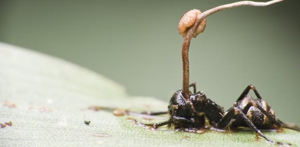 လူသိအများဆုံး ဥပမာတစ်ခုကတော့ Ophiocordyceps လို့ခေါ်တဲ့ မှိုတစ်မျိုးပဲ ဖြစ်ပါတယ်။ ဒီမှိုဟာ ပုရွက်ဆိတ်တွေကို ကူးစက်ပြီးရင် ပုရွက်ဆိတ်ရဲ့ ဦးနှောက်နဲ့ အာရုံကြောစနစ်ကို ဝင်ရောက်ထိန်းချုပ်လိုက်ပြီး ရောဂါကူးစက်ခံရတဲ့ ပုရွက်ဆိတ်ဟာ ကိုယ့်ကိုယ်ကို မထိန်းချုပ်နိုင်တော့ဘဲ ဖုတ်ကောင် (Zombie) တစ်ကောင်လို ဖြစ်သွားပါတယ်။ ဒီအဆင့်ရောက်တာနဲ့ မှိုက ပုရွက်ဆိပ်ရဲ့ ခန္ဒာကိုယ်ကို အပြီးအပိုင်ထိန်းချုပ်ပြီး သစ်ပင်အမြင့်ပေါ်မှာရှိတဲ့ သစ်ရွက်တဟ်ရွက်ရွက်ဆီကို ကိုက်ခဲထားက်ေစပါတယ်။ အဲဒီအခါမှ ပုရွက်ဆိတ်ရဲ့ခေါင်းထဲကနေ မှိုပင်ကြီး ထွက်လာပြီးတော့ နောက်ထပ် မှိုမျိုးမှုန်တွေကို လေထဲကနေတဆင့် အောက်မှာရှိတဲ့ တခြားပုရွက်ဆိတ်တွေကို ထပ်မံကူးစက်စေပါတယ်။ ဒါဟာ သိပ္ပံစိတ်ကူးယဉ် ဇာတ်လမ်းမဟုတ်ဘဲ တောတောင်တွေထဲမှာ နေ့စဉ်ဖြစ်ပျက်နေတဲ့ အမှန်တရားပါ။