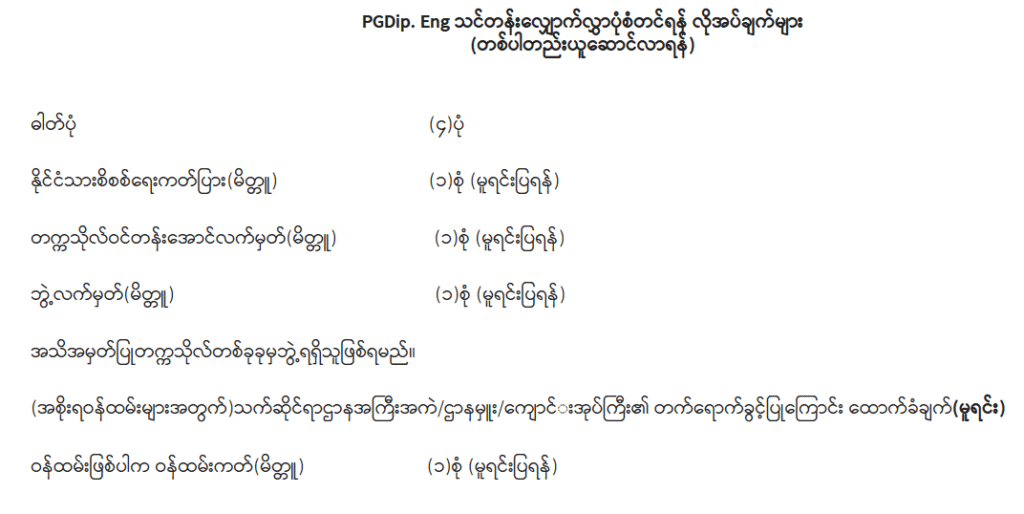 ဘွဲ့လွန်အင်္ဂလိပ်စာ ဒီပလိုမာသင်တန်း Postgraduate Diploma in English (PGDip. Eng)